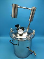 - Легко превращается в полноценный самогонный аппарат и каптильню (насадки для дистилляция и копчения докупается отдельно)