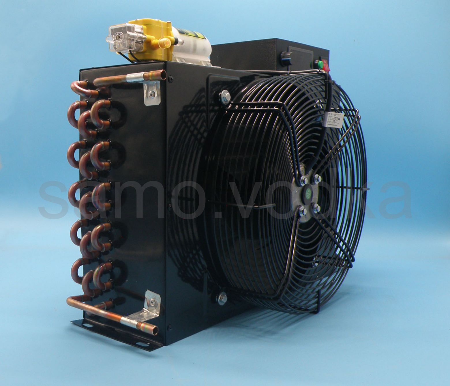 Радиатор охлаждения - это устройство, в котором горячая (после прохождения по теплообменнику винокуренного оборудования) вода охлаждается до комнатной температуры с помощью интенсивного обдува радиатора.