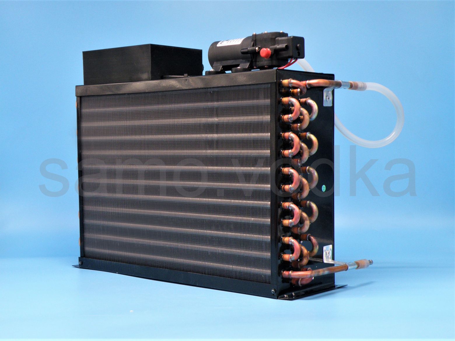 Радиатор охлаждения - это устройство, в котором горячая (после прохождения по теплообменнику винокуренного оборудования) вода охлаждается до комнатной температуры с помощью интенсивного обдува радиатора.