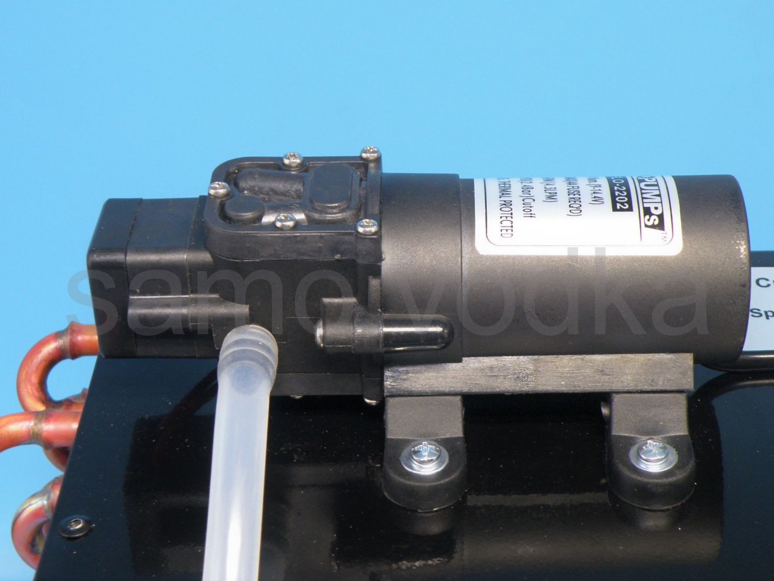 Насос, который прокачивает воду по контуру «емкость – колонна – радиатор охлаждения – обратно в емкость». Скорость работы насоса (скорость подачи воды) меняется с помощью регулятора.