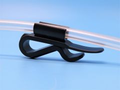 Клипса-держатель для сифона крепится на край емкости, и позволяет зафиксировать трубку на ферментере.
