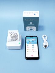 Портативный термопринтер для печати штрих-кодов, QR-кодов, этикеток, наклеек, памяток, и многого другого через приложение по Bluetooth с телефона. Интерфейс USB 2.0.