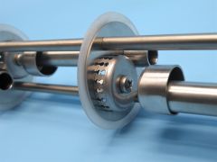 Данная вставка используется в царгах длиной 30 см Вставку можно легко разобрать, раскрутив резьбовое соединение на шпильке для уменьшения количества тарелок (таким образом колонна "настраивается" под вкус винокура для того или иного сырья).