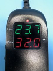 Температурный датчик на длинном проводе легко размещается в нужном для вас месте. Как только температура там превышает заданную норму, контроллер отключает обогревательное оборудование, а когда в террариуме становится слишком прохладно - включает вновь. Минимальная разница температур, при которой сработает термоконтроллер, всего 0,1°C.
