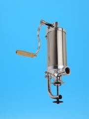 Шприц колбасный вертикальный со струбциной, 2,5 кг предназначен для ручной набивки любых фаршей, в том числе мясных эмульсий, домашних колбас, сосисок, сарделек, шпикачек и тд. Подходит для свиной черевы, бараньей черевы, кругов, пузырей, синюги, коллагеновой оболочки.